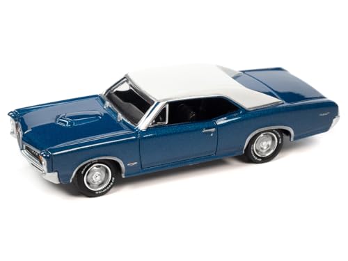 1966 Pontiac GTO Barrier Blue Metallic w/White Top and White Interior Classic Gold Collection 2023 Release 1 Limited 4068 Pieces Worldwide 1/64 Diecast Model Car Johnny Lightning JLCG031-JLSP325A