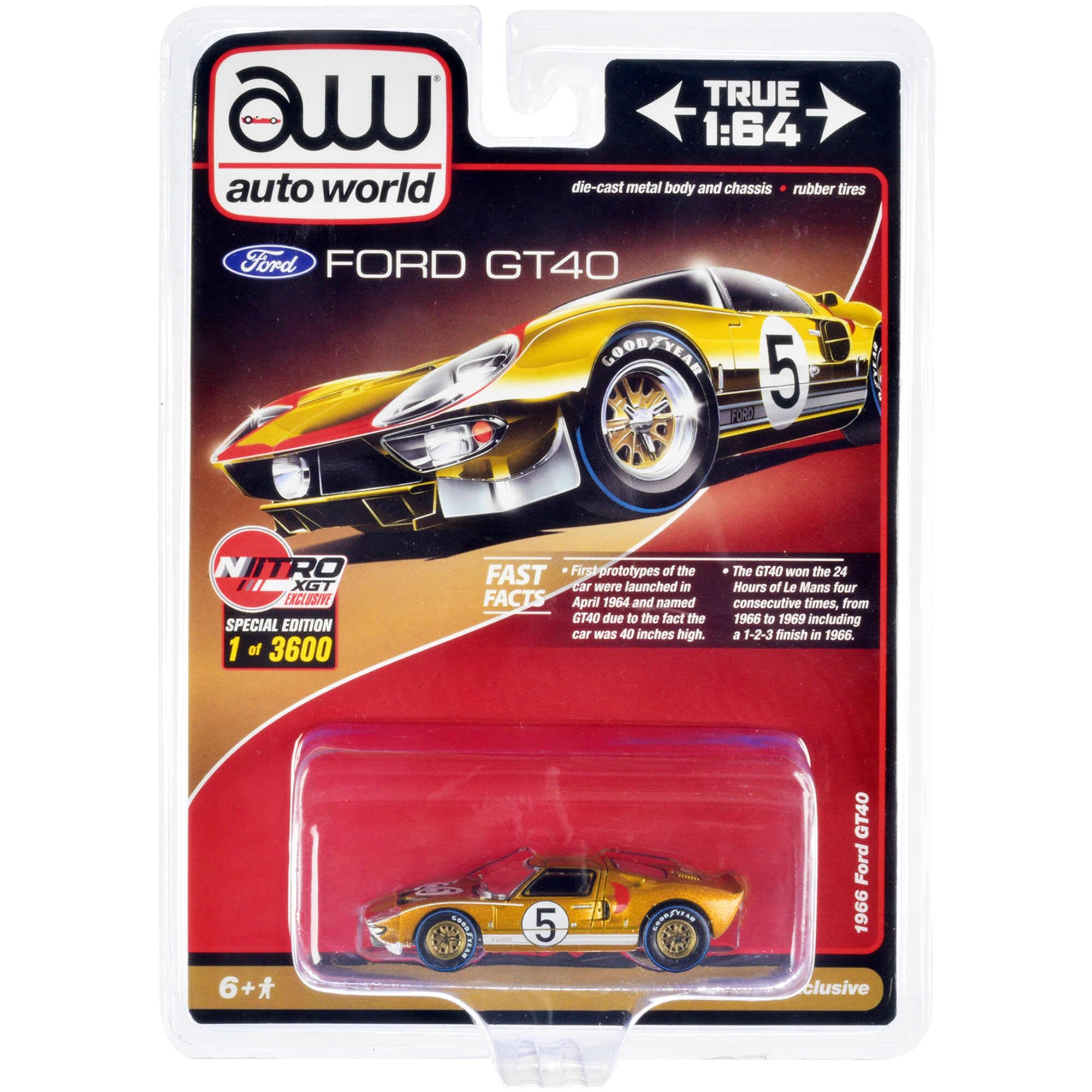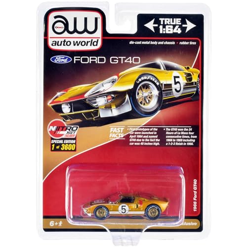 1966 Ford GT40#5 Gold Limited Edition to 3600 Pieces Worldwide 1/64 Diecast Model Car by Auto World CP7923