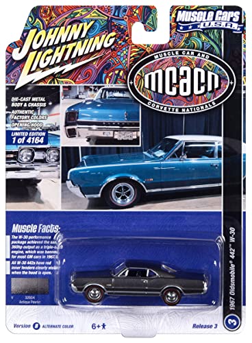 1967 442 W-30 Antique Pewter Gray Metallic MCACN Limited Edition to 4164 Pieces Worldwide Muscle Cars USA Series 1/64 Diecast Model Car by Johnny Lightning JLMC031-JLSP289B