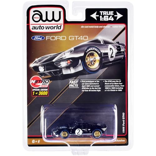 1966 Ford GT40#2 Black Limited Edition to 3600 Pieces Worldwide 1/64 Diecast Model Car by Auto World CP7922