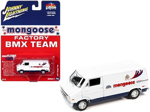 1977 Van White with Graphics Mongoose Factory BMX Team Pop Culture 2023 Release 2 1/64 Diecast Model Car by Johnny Lightning JLPC012-JLSP328