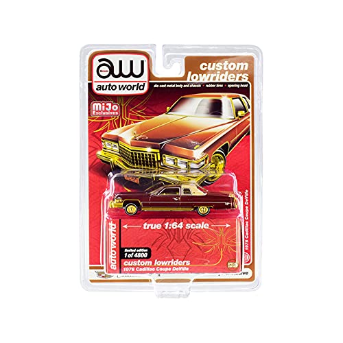 1976 Cadillac Coupe DeVille Burgundy and Cream with Gold Wheels Custom Lowriders Limited Edition 4800 pcs 1/64 Diecast Model Car by Autoworld CP7660