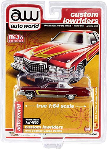 1976 Cadillac Coupe DeVille Burgundy and White with Chrome Wheels Custom Lowriders Ltd Ed to 4800 pcs 1/64 Diecast Model Car by Autoworld CP7661