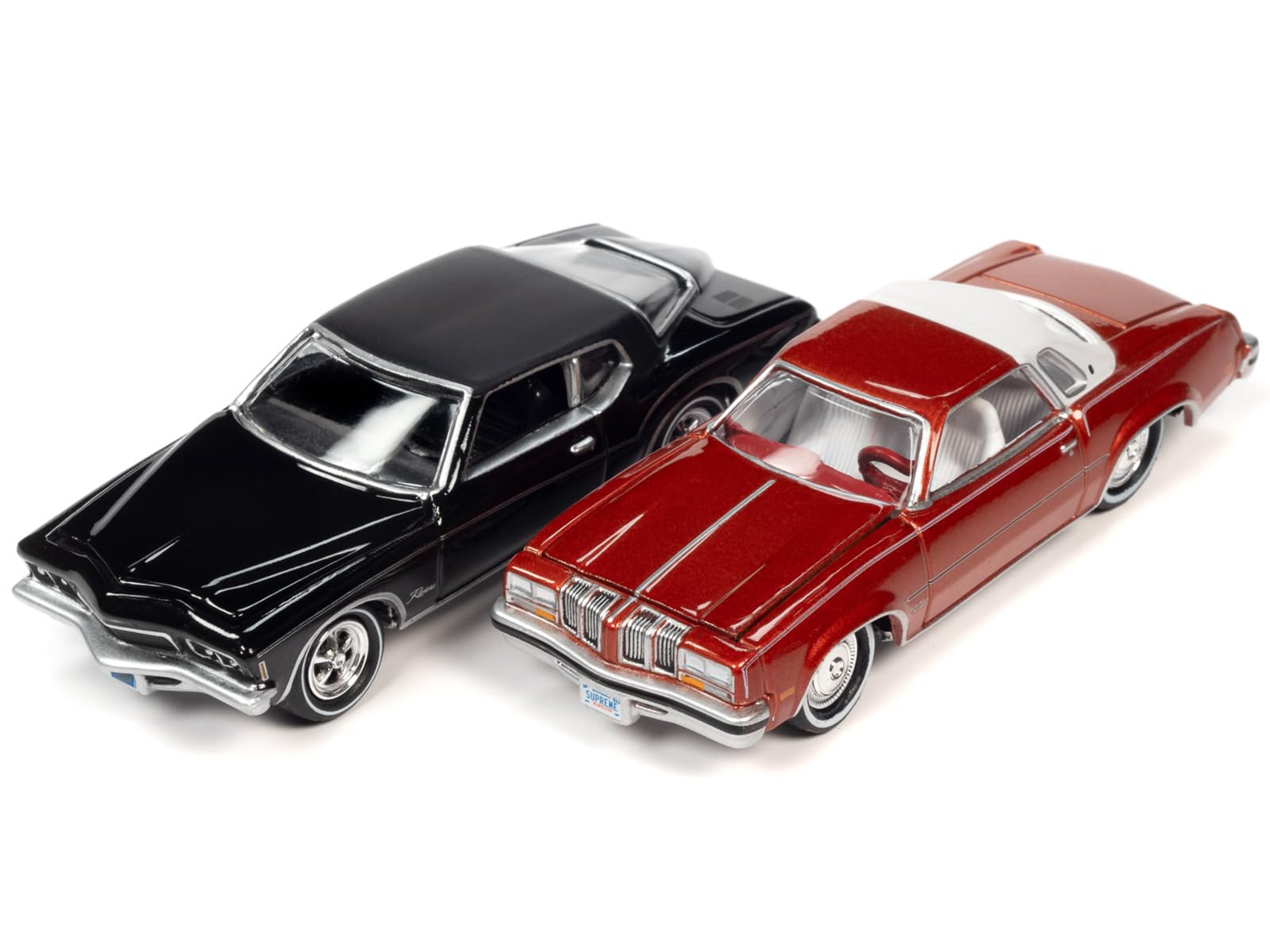 1976 Cutlass Supreme Red Metallic with White Top and Interior & 1972 Riviera Black Super Seventies Set of 2 Cars 2-Packs 2023 Release 2 1/64 Diecast Model Cars by Johnny Lightning JLPK022-JLSP341B