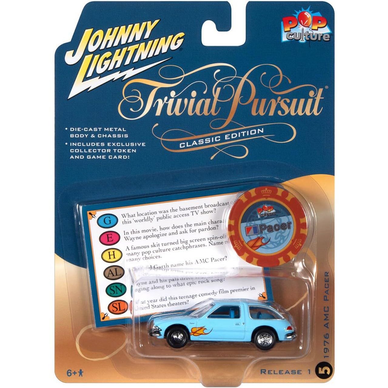 1976 Pacer Light Blue w/Flames w/Poker Chip & Game Card Trivial Pursuit Pop Culture 1/64 Diecast Model Car by Johnny Lightning JLPC011-JLSP313