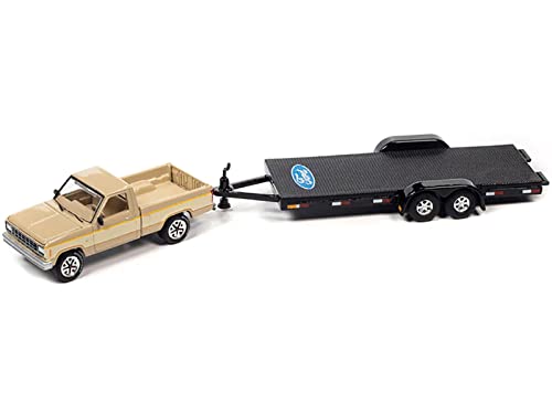 1983 Ranger XLS Pickup Truck Light Desert Tan and White with Open Flatbed Trailer Limited Edition to 7264 Pieces Worldwide Tow & Go Series 1/64 Diecast Model Car by Johnny Lightning JLBT017-JLSP316A