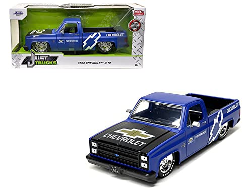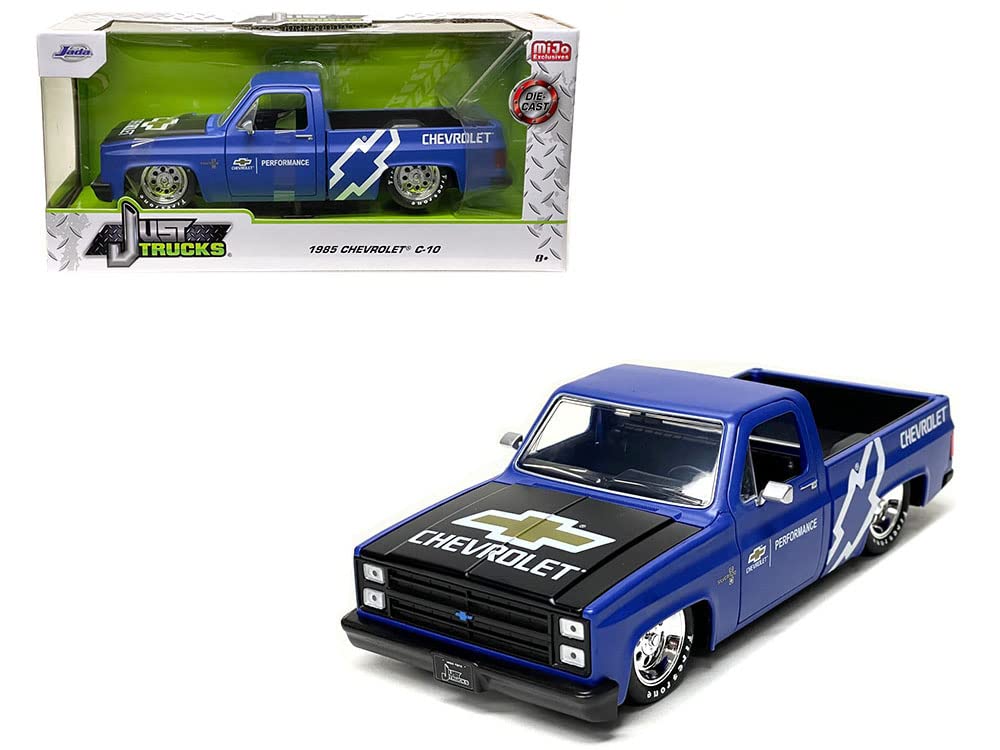 1985 Chevy C10 Pickup Truck Matt Blue with Black Hood Chevy Performance Just Trucks Series 1/24 Diecast Model Car by Jada 34314