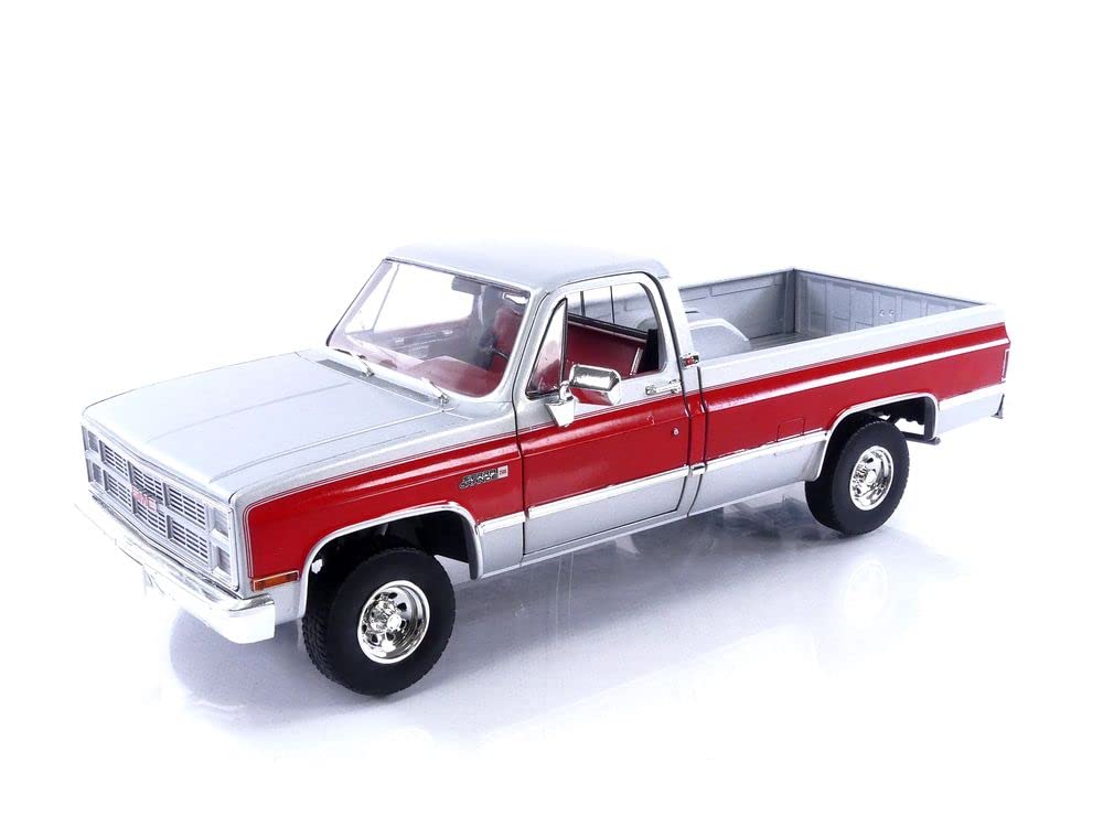1984 K-2500 Sierra Grande Wideside Pickup Truck Silver Metallic and Red with Red Interior 1/18 Diecast Model Car by Greenlight 13660