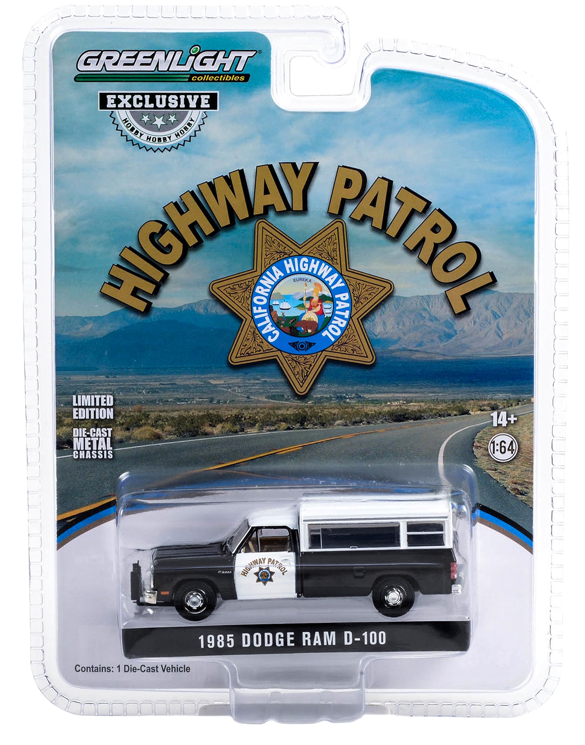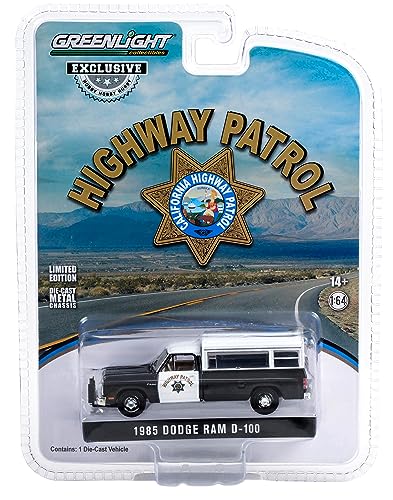 1985 Ram D-100 Pickup Truck Black & White California Highway Patrol w/Camper Shell Hobby Exclusive Series 1/64 Diecast Model Car by Greenlight 30414