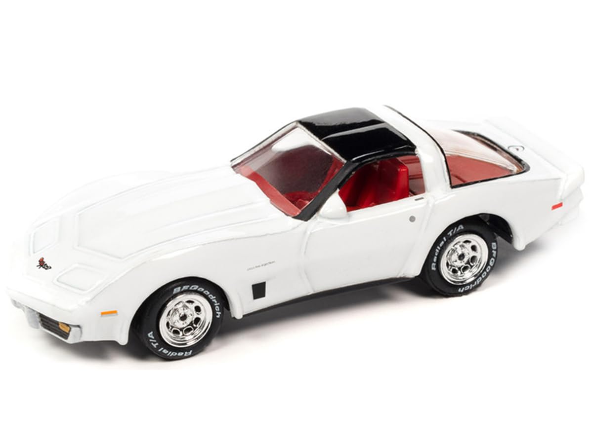 1982 Chevy Corvette White with Black Top and Red Interior Limited Edition to 2644 Pieces Worldwide OK Used Cars 2023 Series 1/64 Diecast Model Car by Johnny Lightning JLMC032-JLSP338A