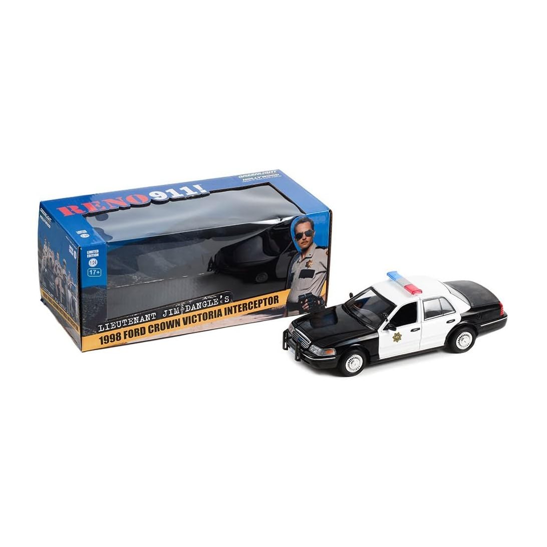 1998 Ford Crown Victoria Police Interceptor Black and White Reno Sheriff's Department Lieutenant Jim Dangle Reno 911 (2003-2009)" TV Series 1/24 Diecast Model Car
