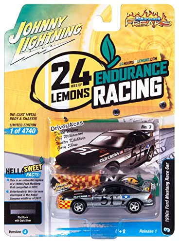 1990s Race Car #51 Black and Dark Silver Metallic Old Crows 24 Hours of Lemons LTD Edition to 4740 pcs Worldwide Street Freaks Series 1/64 Diecast Model Car by Johnny Lightning JLSF025-JLSP295A