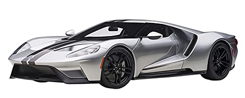 2017 Ford GT Ingot Silver Metallic with Black Stripes 1/12 Model Car by Autoart 12108