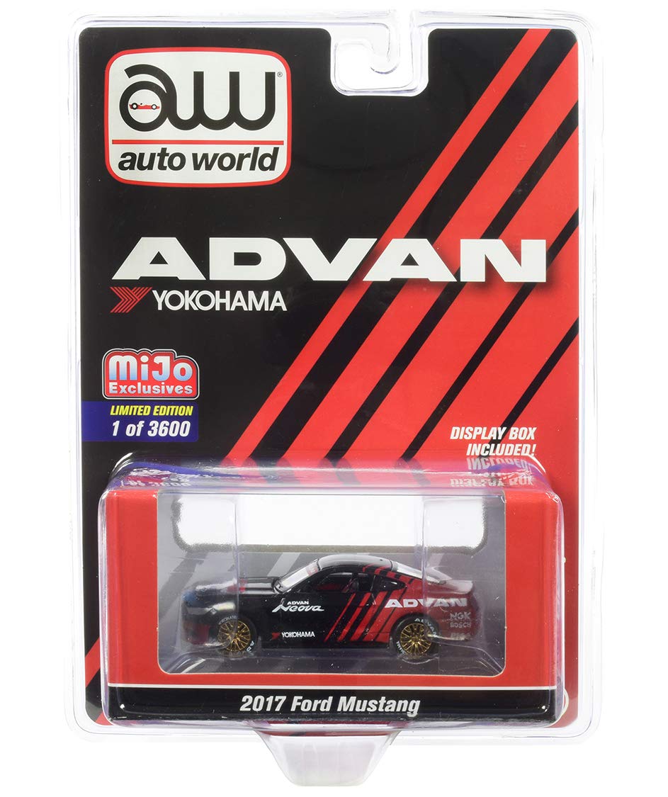 2017 Ford Mustang ADVAN Yokohama Red and Black Limited Edition to 3,600 Pieces Worldwide 1/64 Diecast Model Car by Autoworld CP7584