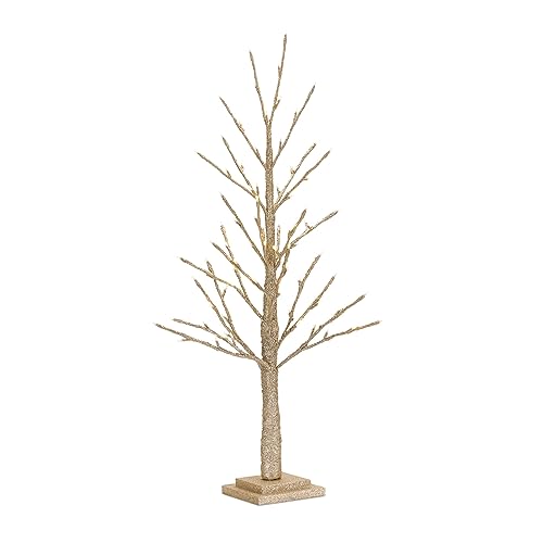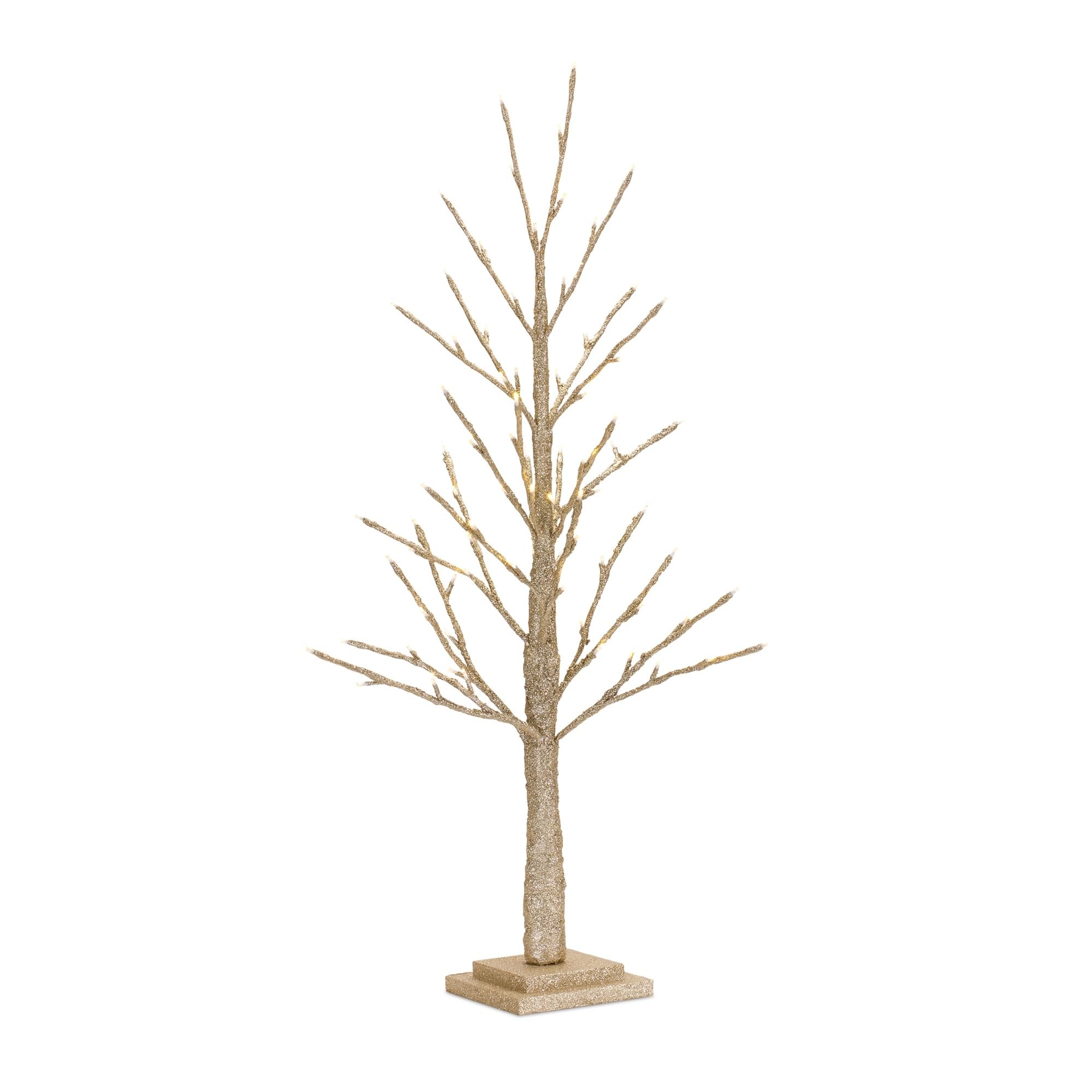 3 Foot Gold Glitter LED Twig Tree On Square Base - Warm White Lights