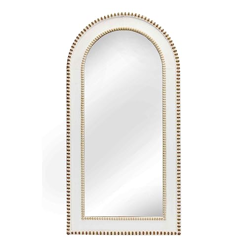 35" White and Brown Beaded Wood Arch Framed Wall Mirror