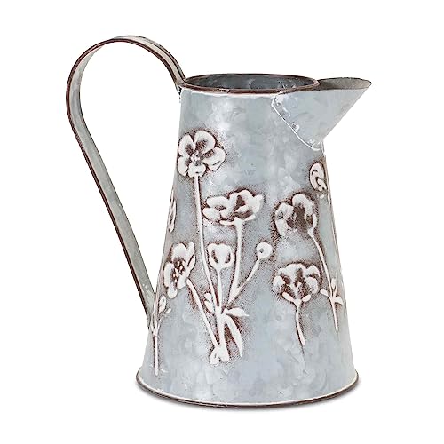 8.75" Gray and Brown Floral Stamped Decorative Pitcher Vase