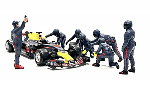 American Diorama F1 Pit Crew Figures (Set III) for 1/18 Scale Formula One Model car Display Set of 7 Figures AD-76558 (Team Blue)