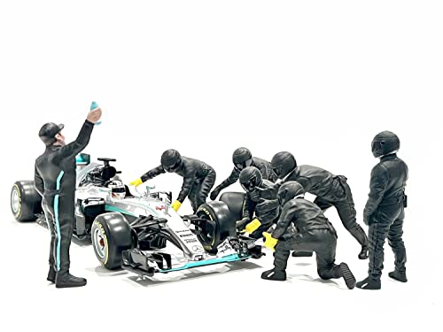American Diorama F1 Pit Crew Figures (Set III) for 1/18 Scale Formula One Model car Display Set of 7 Figures AD-76557 (Team Black)