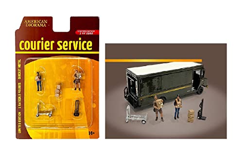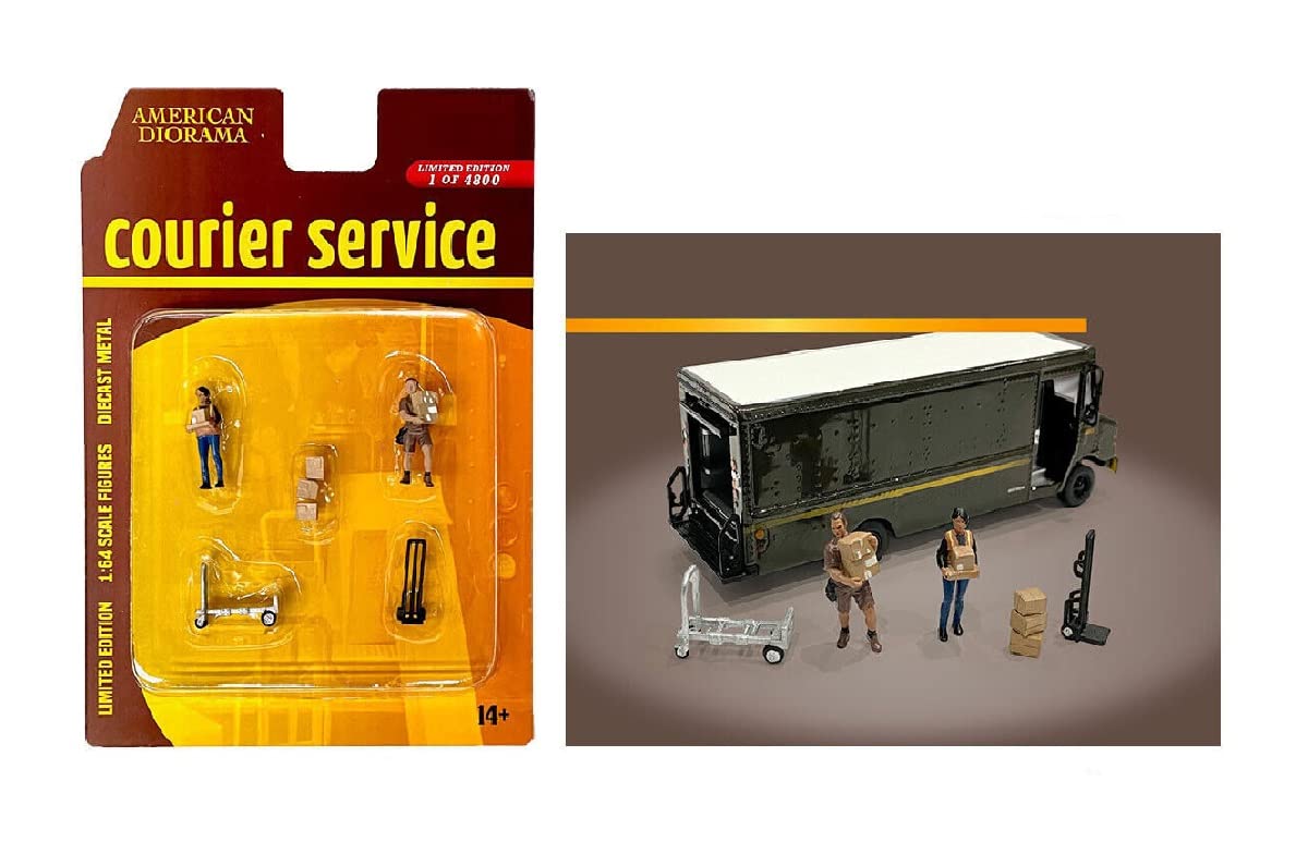 American Diorama Courier Service 5 pc Diecast Figures Set (2 Worker Figures and 3 Accessories) Ltd Ed to 4800 pcs for 1/64 Scale Models 76495