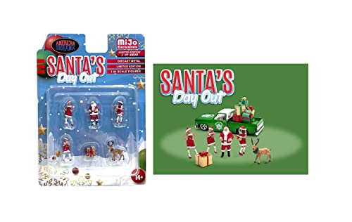 American Diorama Santa's Day Out 1:64 Metal Figures Set AD-76508 (4 Figures + 1 Reindeer + 1 Gift Box)