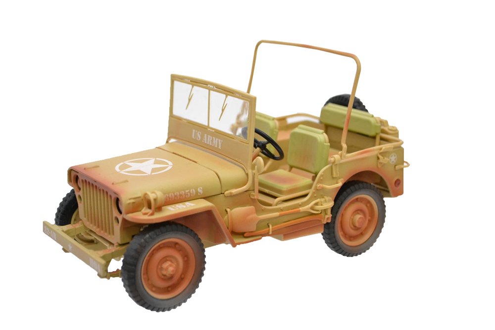 American Diorama US Army WWII Jeep Vehicle Desert Color Weathered Version 1/18 Diecast Model Car