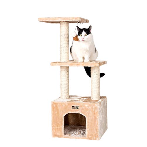 Armarkat 3 Levels Real Wood Cat Tower for Kittens Play 48 Height Beige A4801