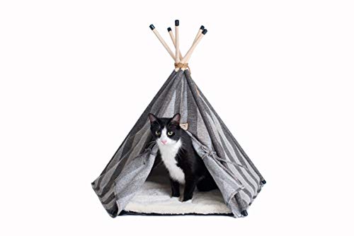 Armarkat Cat Bed Model C56HBS/SH, Teepee Style with Stripped Pattern, Gray 35 x 35 x 29