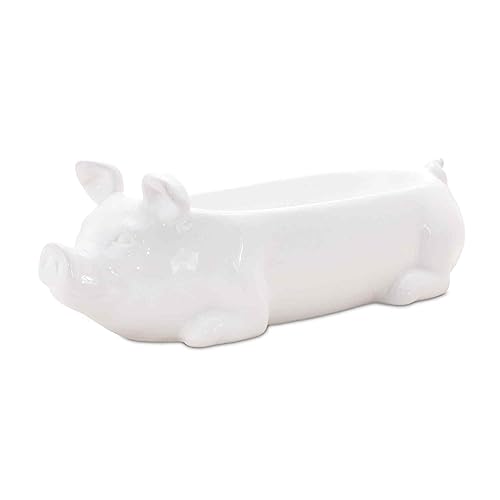 13" White Sitting Pig Ceramic Planter Vase