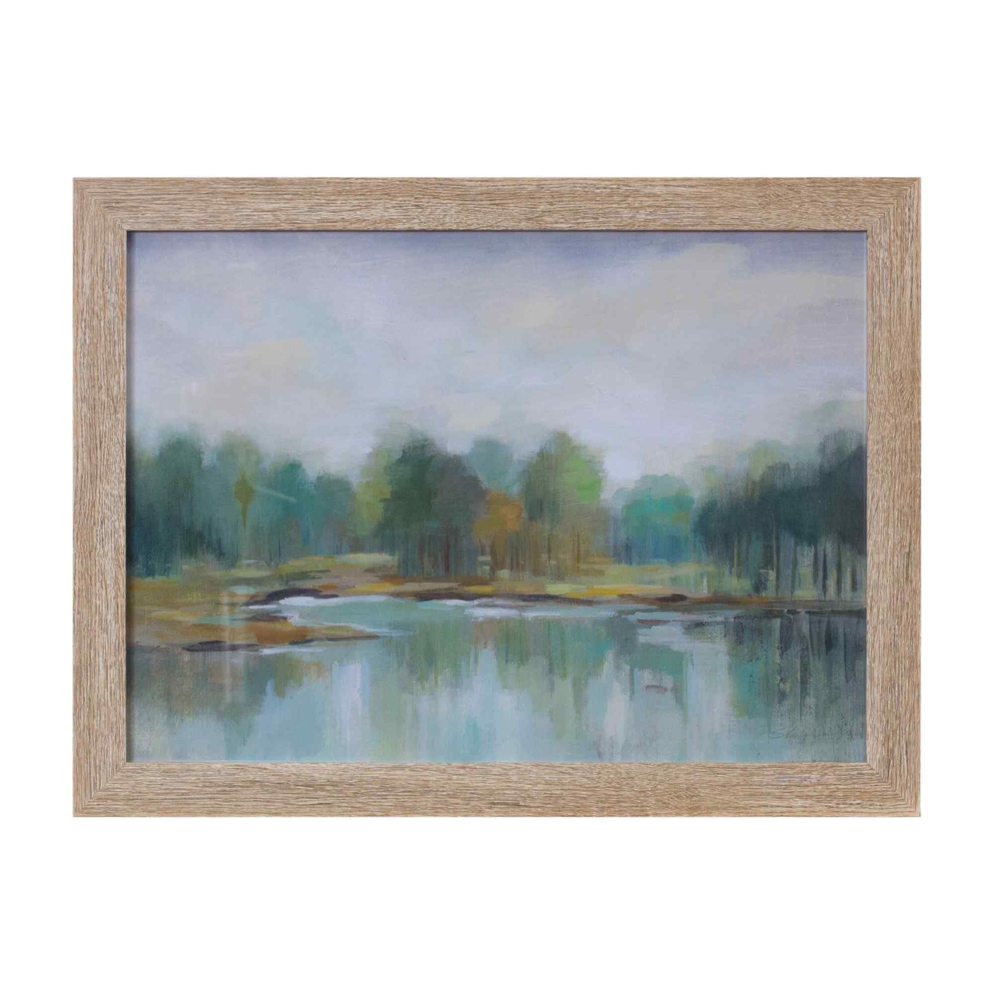 Beige and Green Lake Landscape Rectangular Framed Wall Art 11.75" x 15.75"
