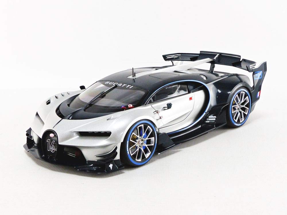 Bugatti Vision Gran Turismo 16" Argent Silver and Blue Carbon Fiber 1/18 Model Car by Autoart 70987