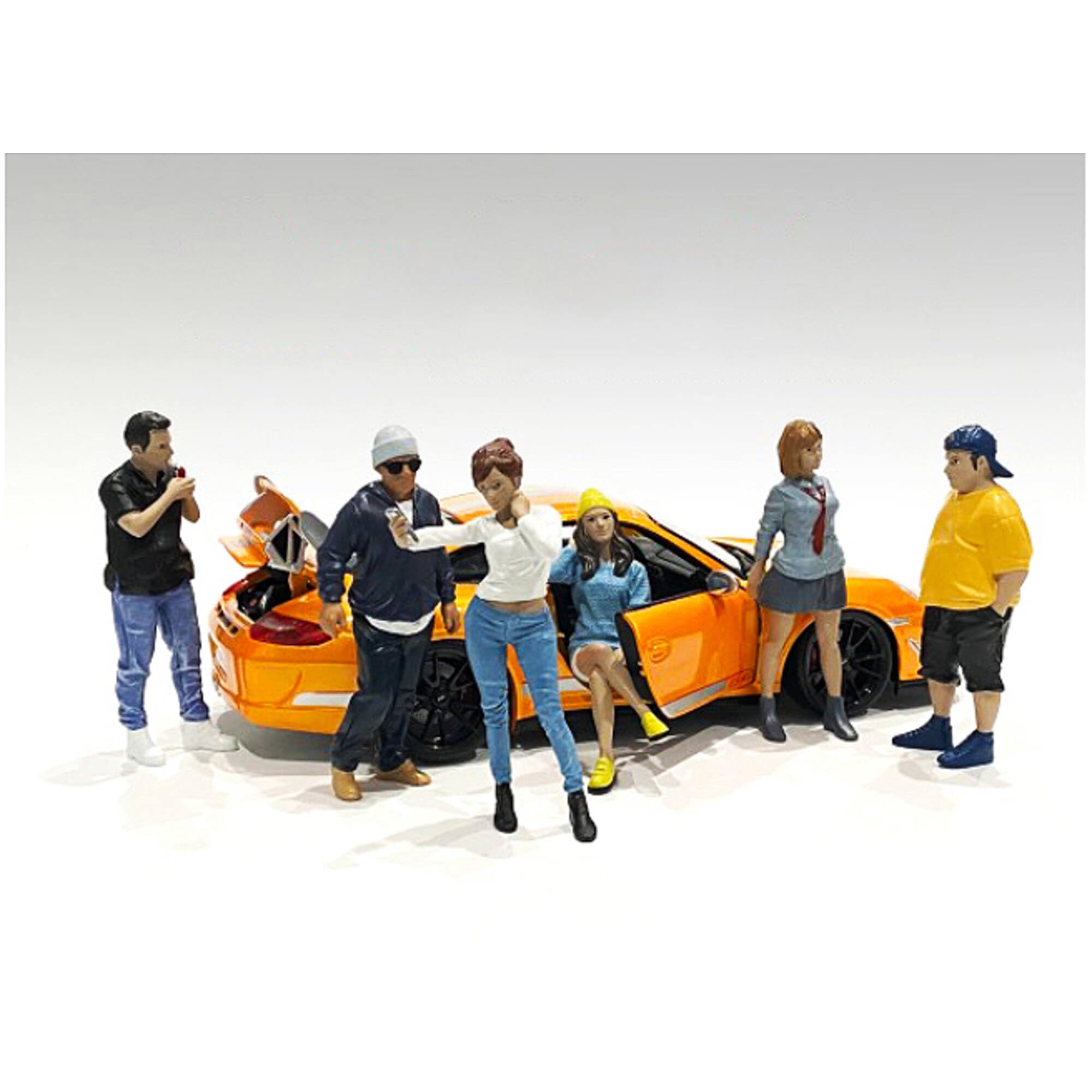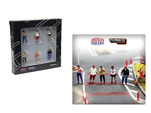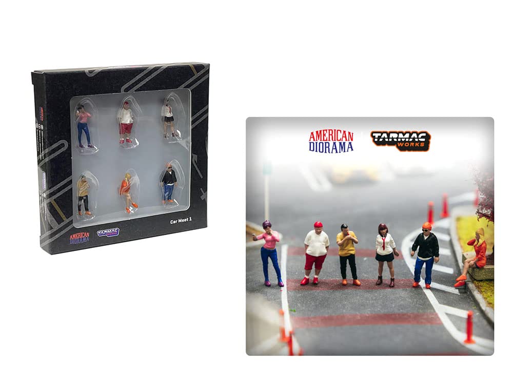 Car Meet 1" 6 Piece Diecast Figure Set for 1/64 Scale Models by Tarmac Works & American Diorama T64F-003-OR