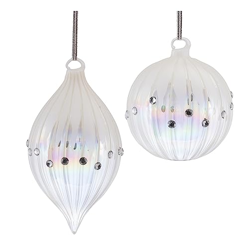 6ct Iridescent Jeweled Glass Drop and Ball Christmas Ornaments 5.5"