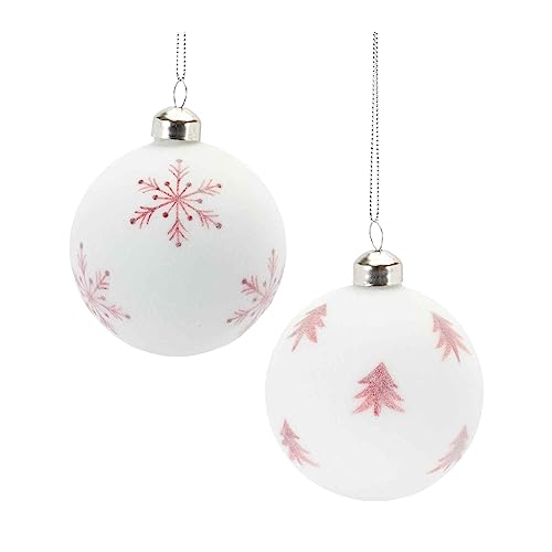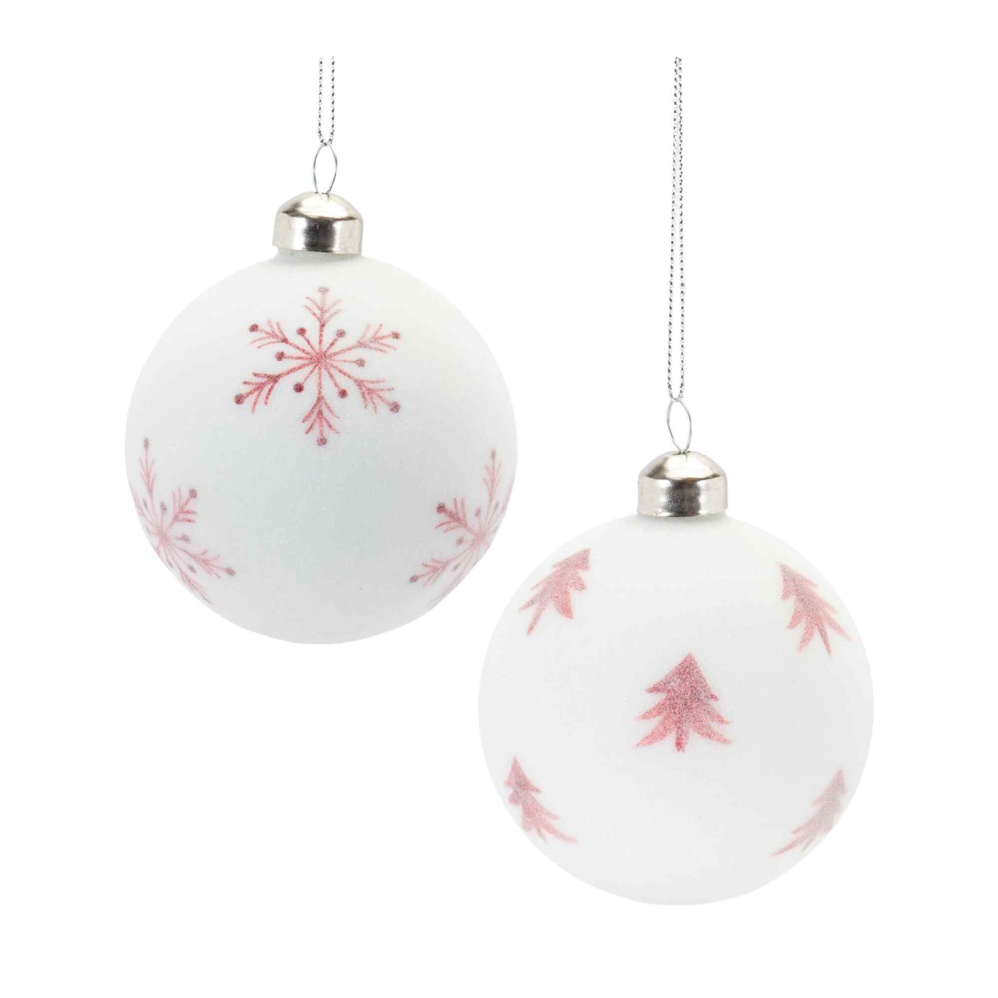 12ct White Frosted Snowflake and Tree Christmas Ball Ornaments 4"