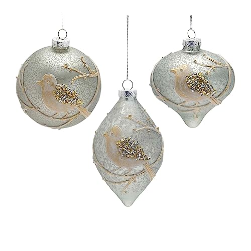 6ct Blue and Gold Beaded Bird Glass Christmas Ornaments 5.5"