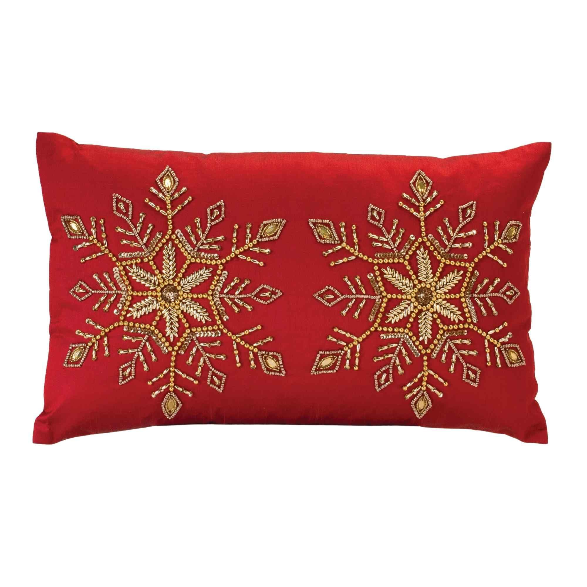 19.5" Embroidered Bead Snowflake Rectangular Christmas Throw Pillow