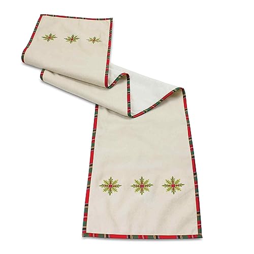 72" Beige and Green Snowflake Embroidered Christmas Table Runner