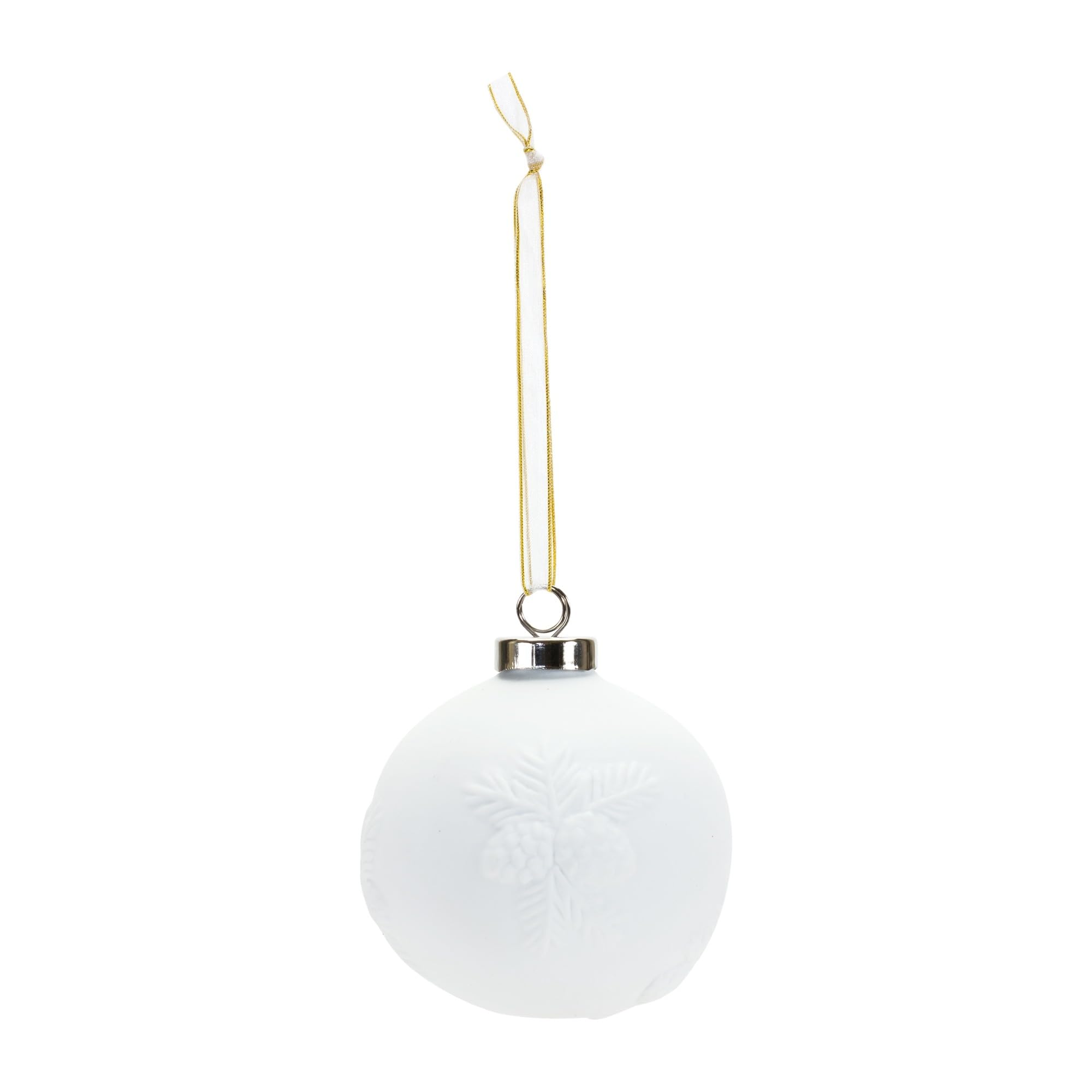 6ct White Porcelain Pine Cone Christmas Ball Ornaments 3"