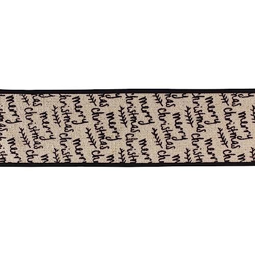 Beige and Black Merry Christmas Wired Craft Ribbon 4" x 5 Yards