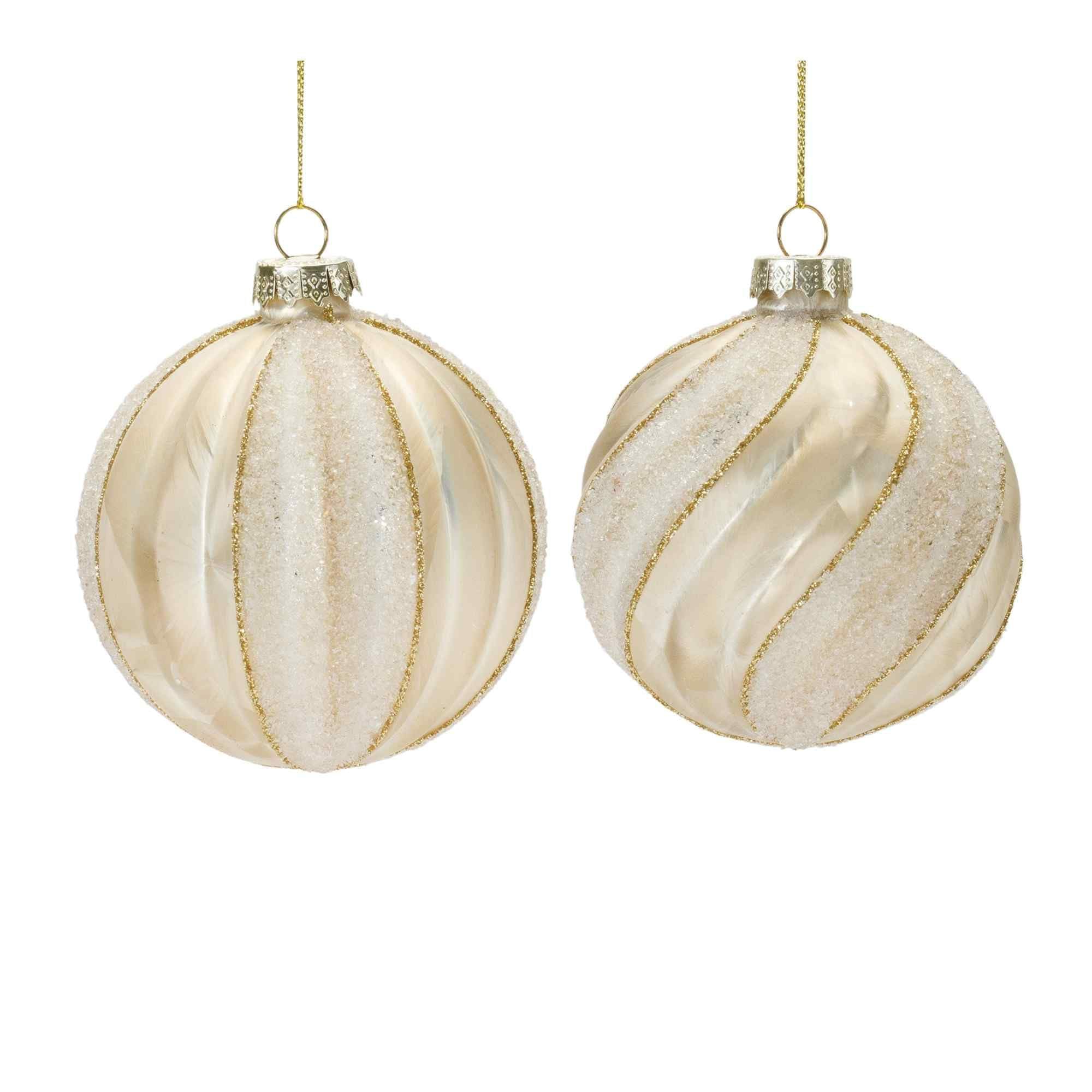 12ct Champagne Gold Ribbed Glitter Glass Christmas Ball Ornaments 3" (76mm)