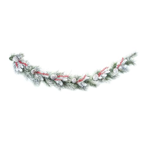 6' x 8" Flocked Pine with Berry Artificial Christmas Garland, Unlit