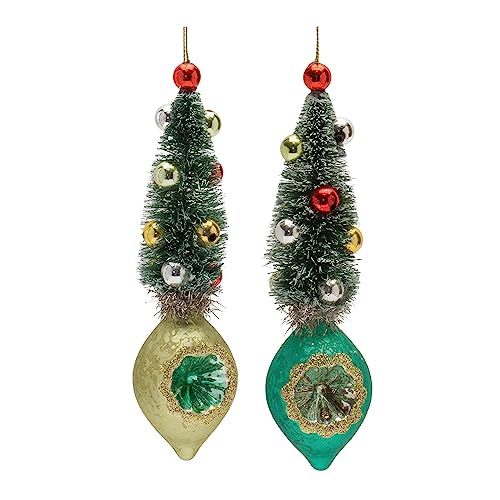 12ct Pine Tree Reflector Christmas Drop Ornaments 6.5"
