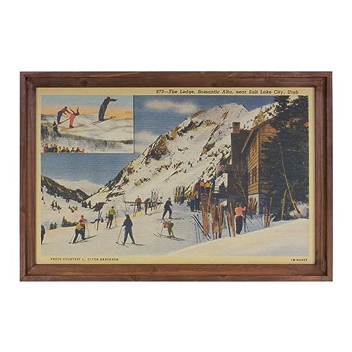 Brown and Blue Vintage Ski Lodge Framed Christmas Wall Art, 23.5" x 15.75"