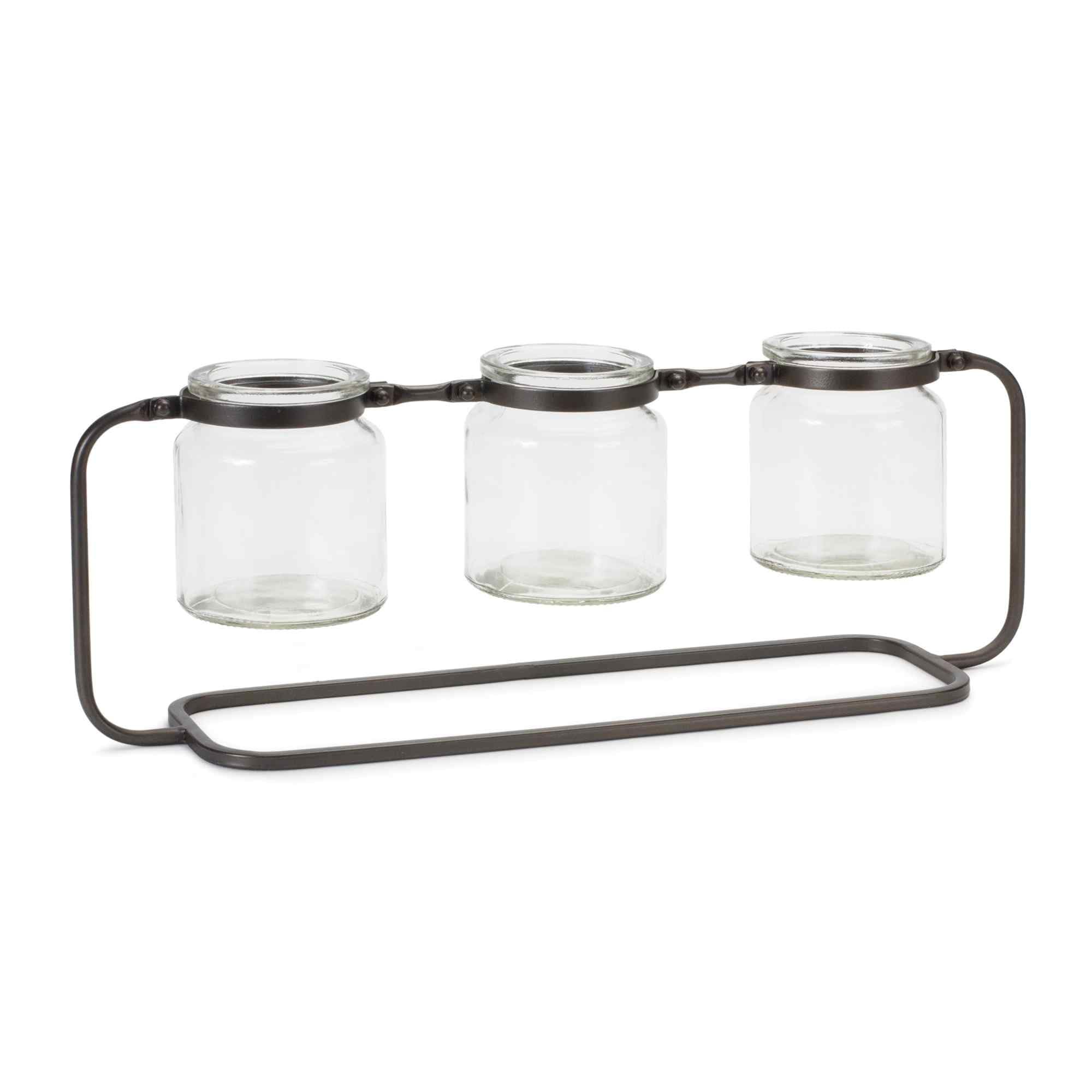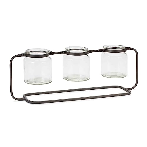 19.75" Clear Decorative Glass Bottle Vases in Stand