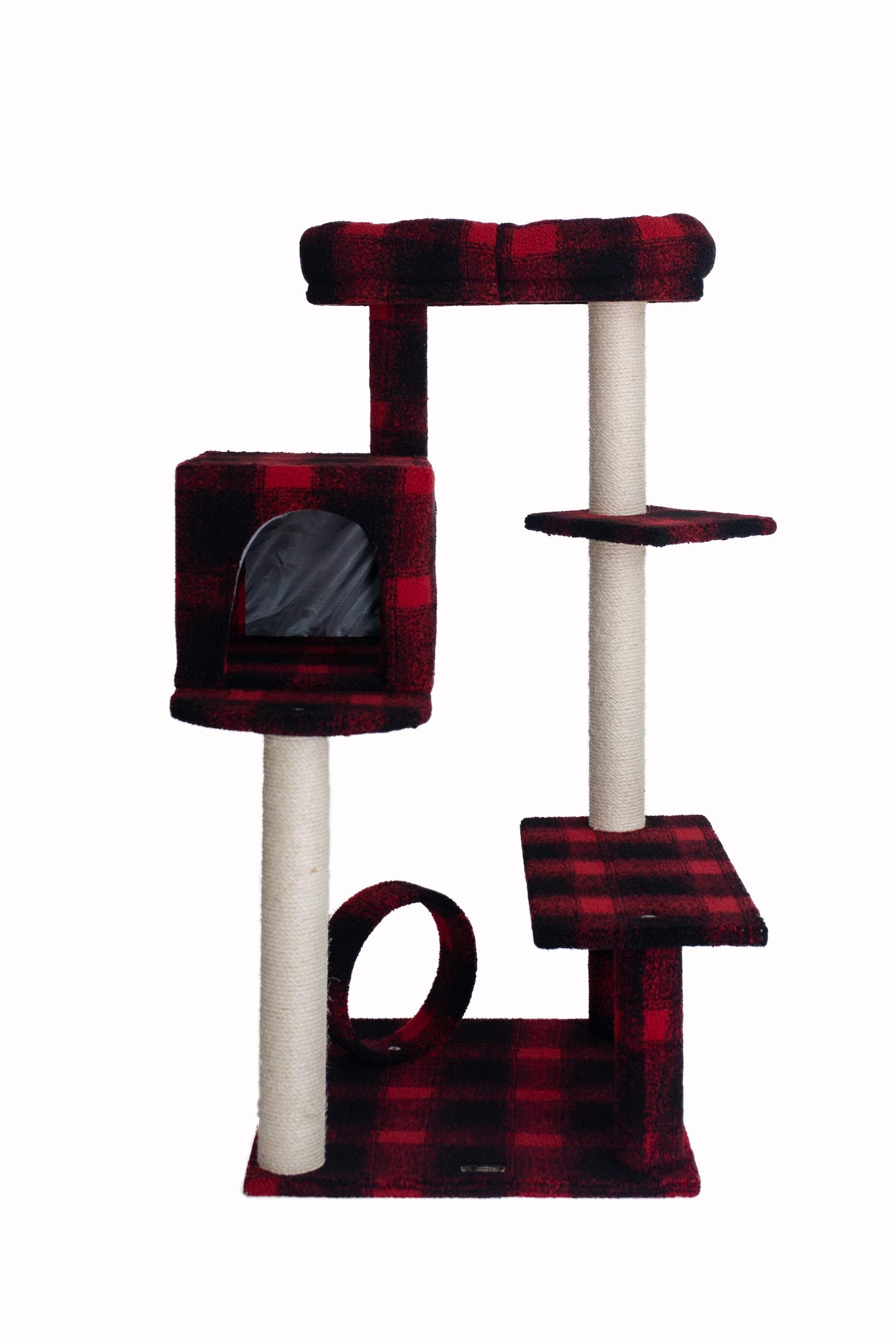 Armarkat Model B5008 50-inch Real Wood Cat Tree with Veranda, Bench, Mini Perch, and Spacious Lounger in Scotch Plaid, Black/Red, 31""(l) x 28""(w) x 50""(h)